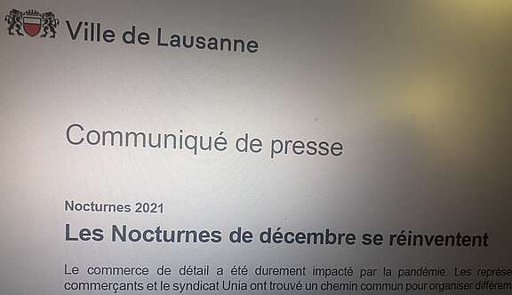 Le résultat des négociations menées sous l'égide d'une délégation de la Municipalité la Ville de Lausanne prévoit le passage de 3 nocturnes jusqu'à 22h à 6 nocturnes jusqu'à 20h dans le règlement communal ainsi que la fermeture anticipée à 17h des magasins le 24 décembre. Plusieurs améliorations de la CCT viennent également apporter des protections au personnel déjà très sollicité durant la période de l'Avent :