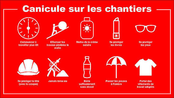 Pour l’heure, et devant l’augmentation prévisible des jours de canicule ces prochaines années avec le réchauffement climatique, il est impératif que la Société Suisse des Entrepreneurs (SSE) ainsi que tous ses membres prennent leurs responsabilités et veillent à ce que toutes les entreprises de la construction appliquent les mesures de protection pour les travailleurs en cas de canicule. Ceci concerne notamment l’aménagement du temps de travail, la distribution d’eau potable et fraîche en quantité suffisante et la possibilité de marquer des pauses chaque heure à l’ombre. Unia Vaud demande qu’un rappel soit effectué de toute urgence aux entreprises vaudoises par l’intermédiaire de la Fédération vaudoise des entrepreneurs.