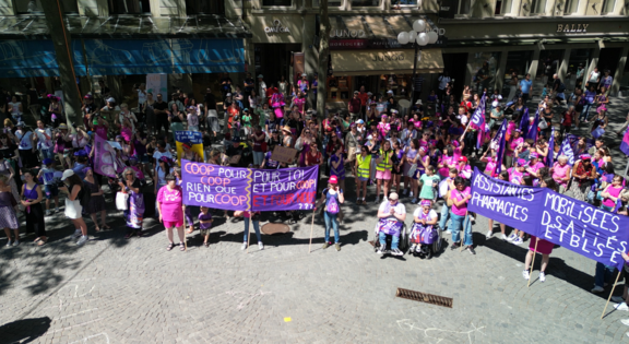 En ce jour de grève des femmes / grève féministes, plusieurs comités de branche d’Unia se sont mobilisés pour faire entendre leurs revendications pour l’égalité. Si la mobilisation des assistantes en pharmacie était répartie entre des officines de Lutry et de Lausanne-Bellevaux, les vendeuses s’étaient données rendez-vous à la rue de Bourg à Lausanne. Bilan réussi, les métiers du service étaient bien représentés dans cette journée d’action.