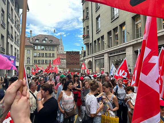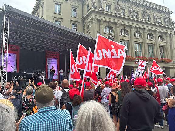 La manifestation salariale à Berne n’est qu’une première étape. Unia continue à s’engager pour de meilleurs salaires et de meilleures rentes. La prochaine mobilisation aura lieu le 7 octobre à Zürich où des salarié-e-s de l’électricité et de la technique du bâtiment manifesteront pour de meilleures conditions de travail et des meilleurs salaires. Les rentes continueront à être au centre de l’attention dans les mois à venir. Des améliorations sont nécessaires pour les retraité-e-s qui subissent également le renchérissement de plein fouet. C’est pour cela qu’Unia fera campagne en faveur d’une 13ème rente de l’AVS et combattra les baisses annoncées avec la réforme du deuxième pilier où une fois encore la population devrait payer plus cher pour avoir encore moins. Au-delà des salaires, les salarié-e-s attendent des mesures concrètes face à l'augmentation antisociale des primes d'assurance-maladie et des loyers.