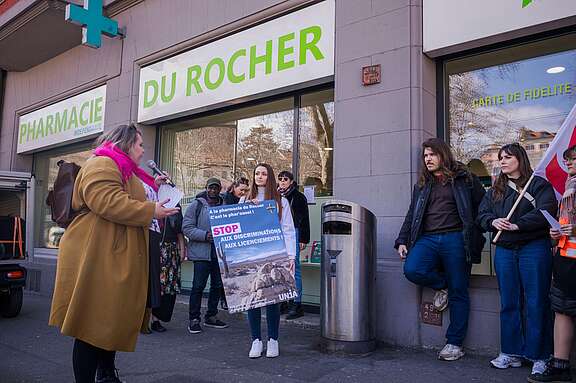 Lors d’un point-presse organisé à la mi-journée devant la pharmacie du Rocher à Lausanne, Unia a dénoncé la situation digne du phar’ouest prévalant dans cette officine. Une salariée y a subi de claires discriminations du fait de sa situation de mère de famille monoparentale et un licenciement immédiat injustifiable. Son employeur n’a pas hésité à lui reprocher ses brèves absences causées par les maladies de ses enfants ; il a mis sous pression ses salarié-e-s avec un règlement ouvertement répressif et empêchant la conciliation entre obligations familiales et professionnelles. D’origine étrangère, cette salariée se retrouve dans une situation précaire après son licenciement. Non seulement elle se retrouve sans salaire en raison de l’absence d’assurance perte de gain maladie mais, en plus, son permis de séjour est remis en question du fait de son absence de revenu. Le comité vaudois des assistant-e-s en pharmacie est venu apporter son soutien à cette salariée ; la présidente du comité a souligné la nécessité de conclure une convention collective de travail pour régler correctement les conditions de travail dans toutes les pharmacies du canton et combattre de telles discriminations. Contacté, l’employeur Frédéric Amar fait la sourde oreille et ne répond pas au courrier du syndicat. A défaut de réaction, Unia soutiendra la salariée dans des procédures judiciaires pour faire valoir ses droits.