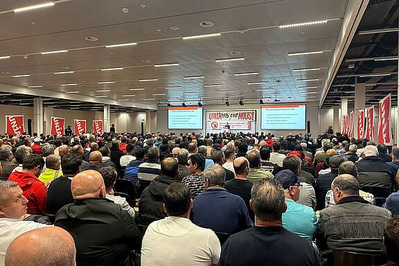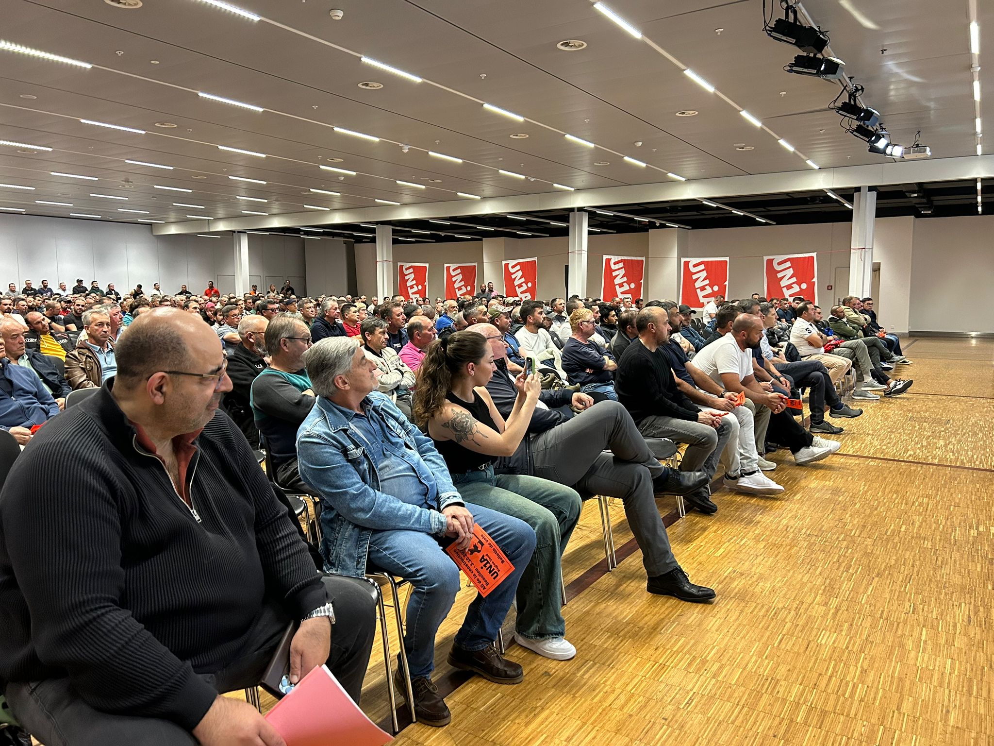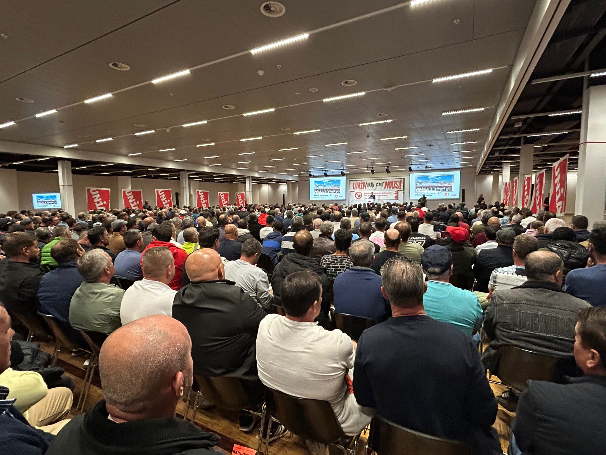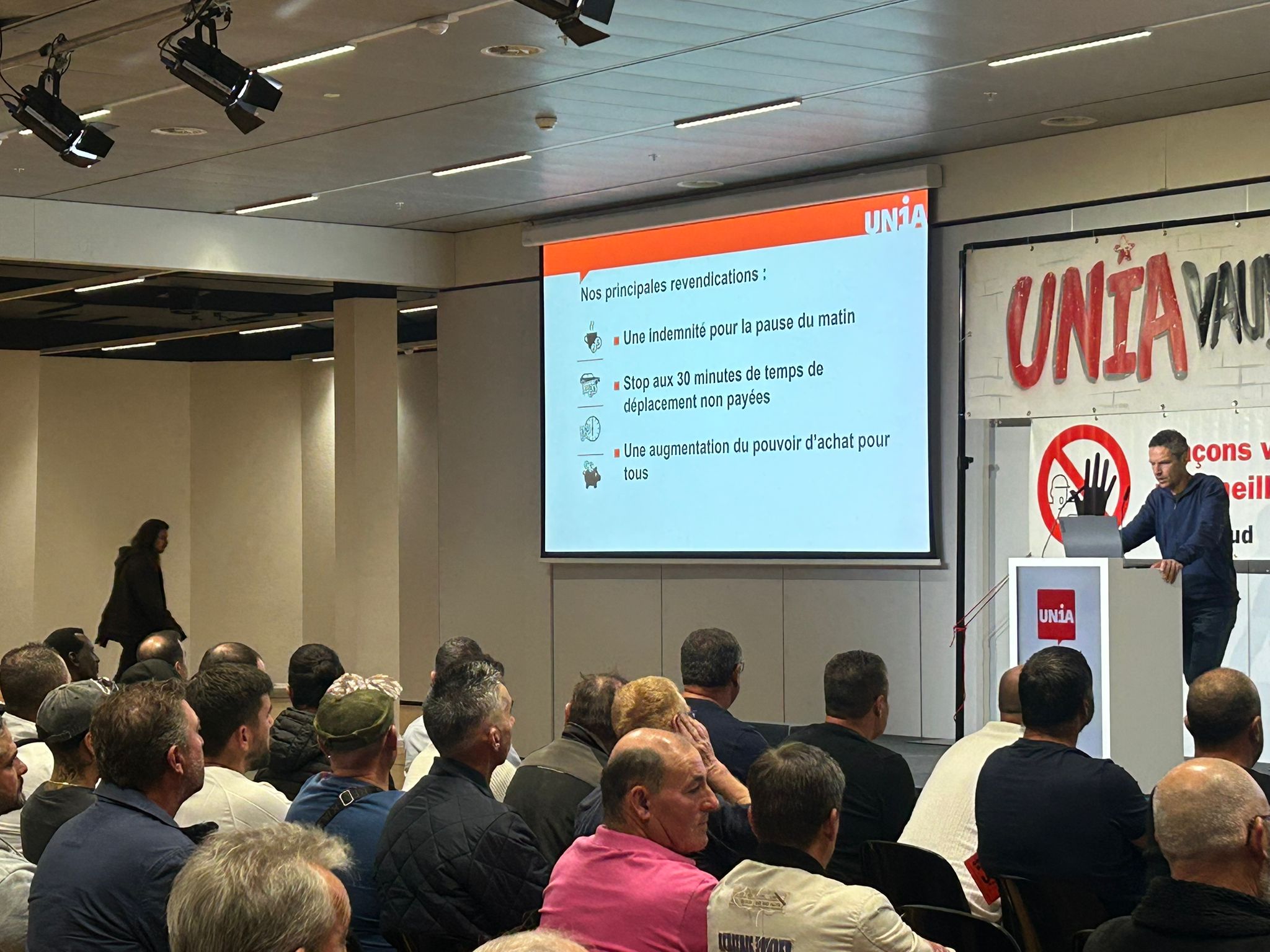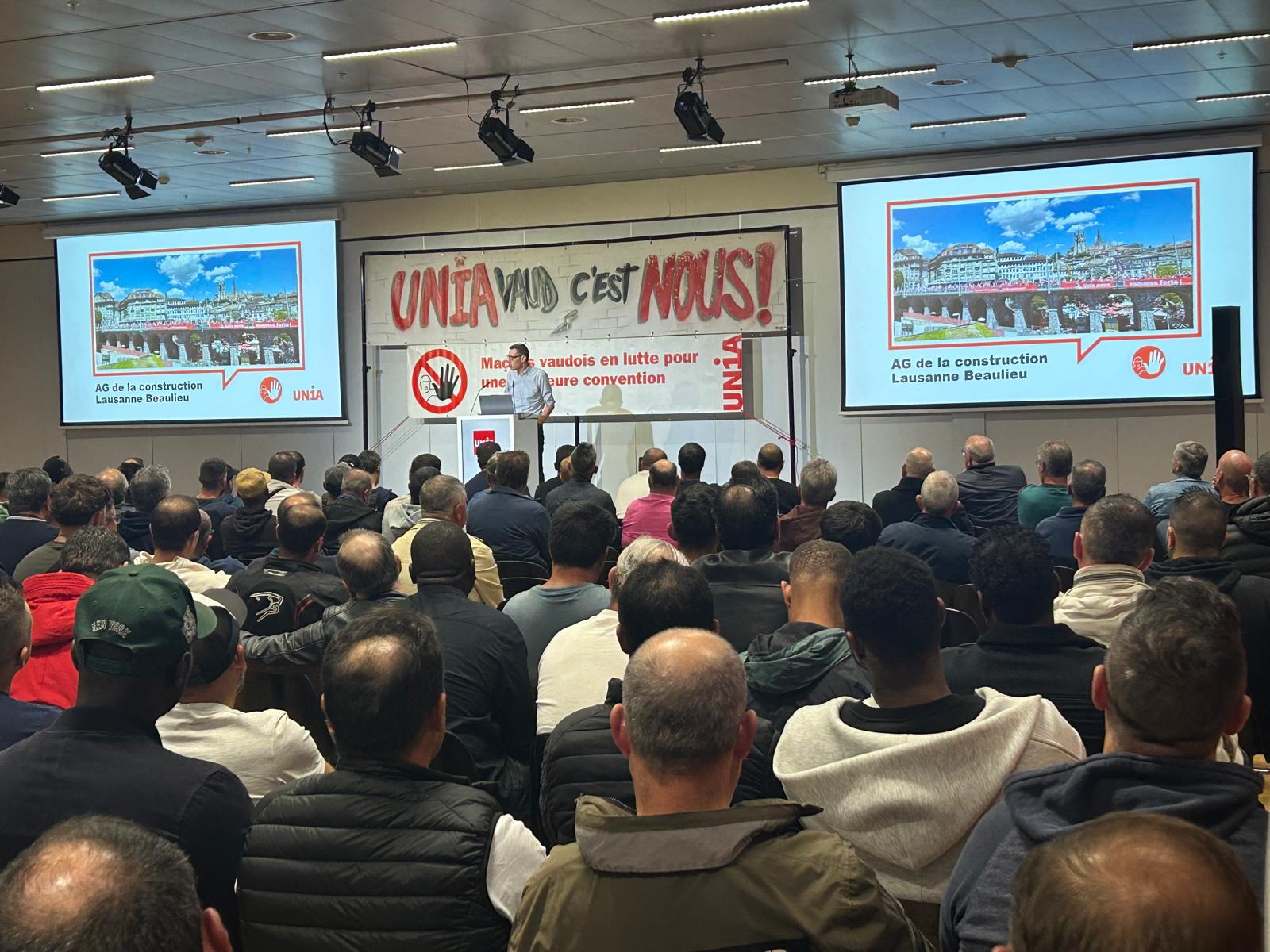 900 maçons vaudois se sont réunis ce vendredi soir 3 octobre au Palais de Beaulieu à Lausanne dans la plus grande assemblée de travailleurs-ses de la construction de Suisse. Constatant les blocages des négociations sur des points essentiels et la péjoration des conditions de travail exigée par la Société suisse des entrepreneurs, les maçons vaudois ont voté une grève de 2 jours à l’unanimité. Face aux propositions outrancières de la part des patrons, les maçons protesteront donc les 3 et 4 novembre dans toute la Suisse romande.